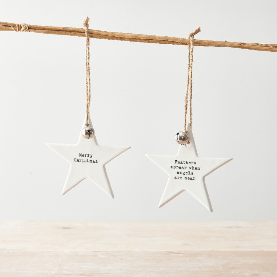 Add a heartfelt, spiritual touch to your décor with this elegant “Feathers Appear When Angels Are Near” Porcelain Star Hanger. Measuring 8.5cm, this white porcelain star features a delicate embossed message that brings comfort and peace—perfect as a memorial ornament, sympathy gift, or meaningful holiday decoration.