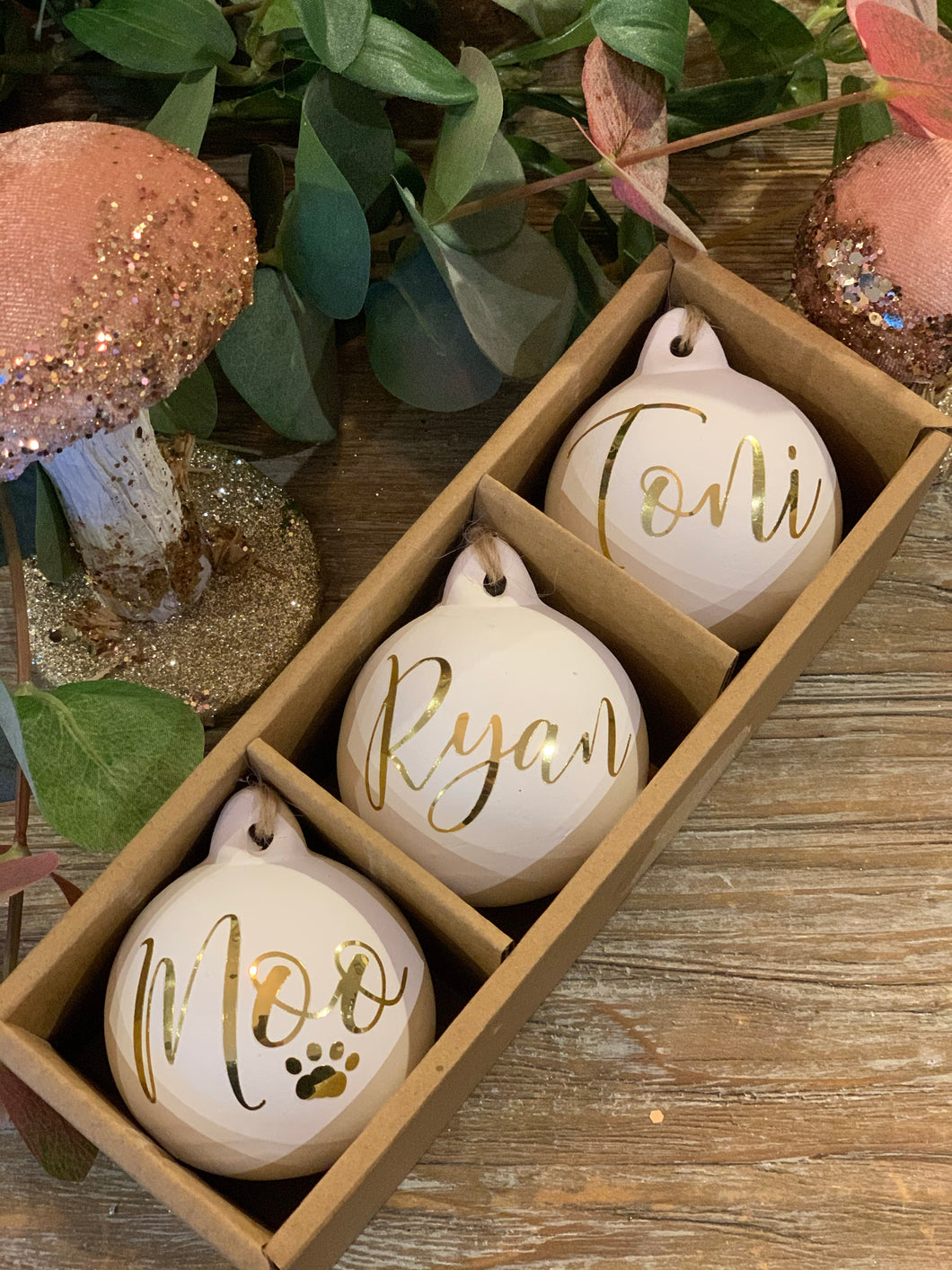 These personalised baubles are perfect for a classic tree or as a gift for someone else.